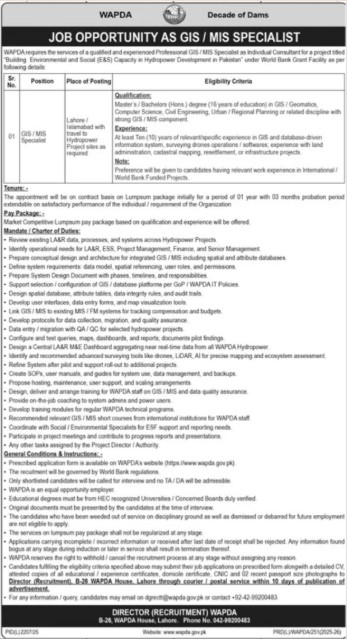 Candidates, if you are seeking the Job Opportunity as GIS / MIS Specialist 2026 in Lahore, if yes. It would be best if you tried to complete reading this Job Opportunity as a GIS / MIS Specialist, because you can easily apply for this vacancy as a GIS / MIS Specialist.